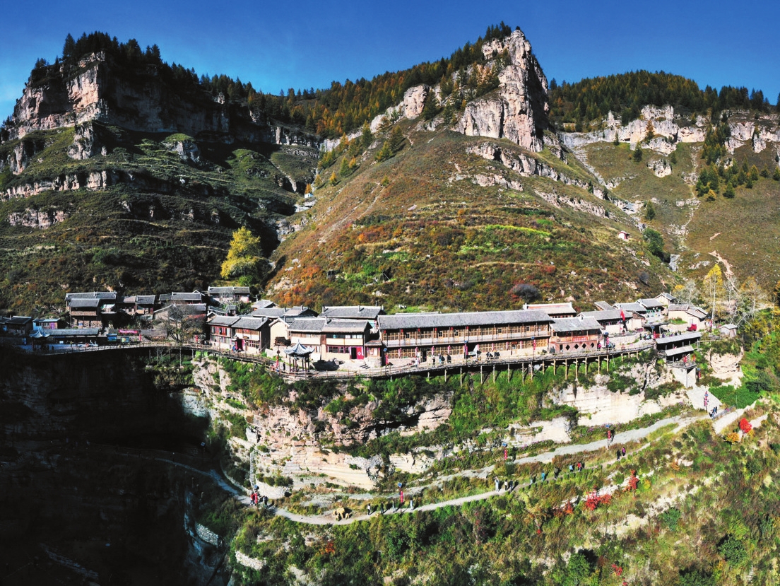 除古棧道、懸棺之外,更加奇特的地方還有建在懸崖峭壁上的懸空村。也許人們驚嘆渾源懸空寺的巧奪天工,但這里的懸空村更奇妙,王化溝、五花山、曹家梁三個村相距不遠,從山下向上望去,好似空中樓閣、天上宮闕。目前王化溝已作為旅游景點對外開放。隱沒在深山老林中的王化溝分布在大約一華里長的絕壁上,背倚懸崖,面臨百丈深淵。村中的房子大都臨崖而建,以木柱支撐,高低錯落,避風向陽。這些房子建在懸崖上看似危險,實則非常堅固,至今還有清代的房子保存完好。世居于此的居民們更是守著大山的淳樸和安然生活,仿若陶淵明筆下的“武陵人”。