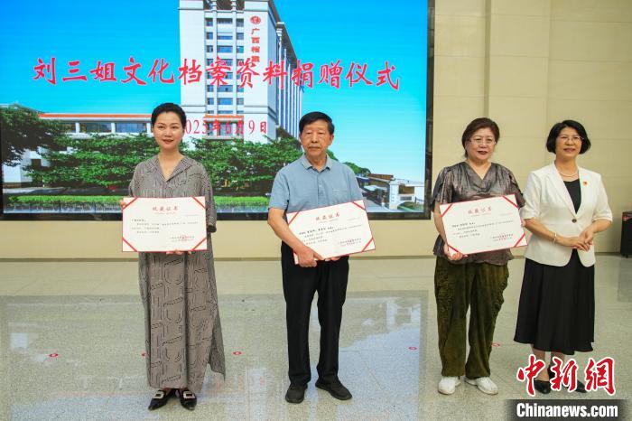 當(dāng)天活動(dòng)現(xiàn)場(chǎng)還舉行了劉三姐文化檔案捐贈(zèng)儀式,柳州《劉三姐》創(chuàng)作組曾昭文、龔邦榕、鄧凡平、牛秀四位作家簽名的創(chuàng)作于1991年的彩調(diào)劇《劉三姐》(第九方案)封筆之作的手稿原件,也由其中的作者曾昭文之子捐贈(zèng)。另外,廣西戲劇院、“劉三姐”扮演者傅錦華女兒傅彬彬等捐贈(zèng)了相關(guān)“劉三姐”照片,廣西壯族自治區(qū)檔案館領(lǐng)導(dǎo)為捐贈(zèng)者們頒發(fā)了收藏證書(shū)。