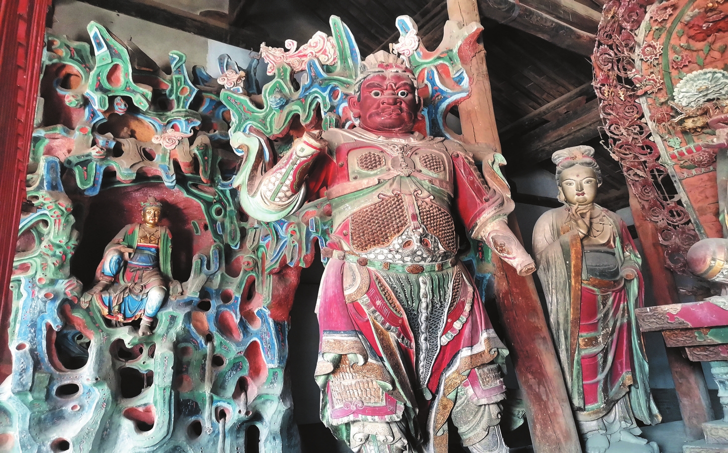梁下莊嚴寶相、金剛怒目,梁上衣袂飄飄、雅樂乾坤。到過洪福寺的人都會為大殿內(nèi)這一靜一動的造像藝術(shù)所驚嘆。