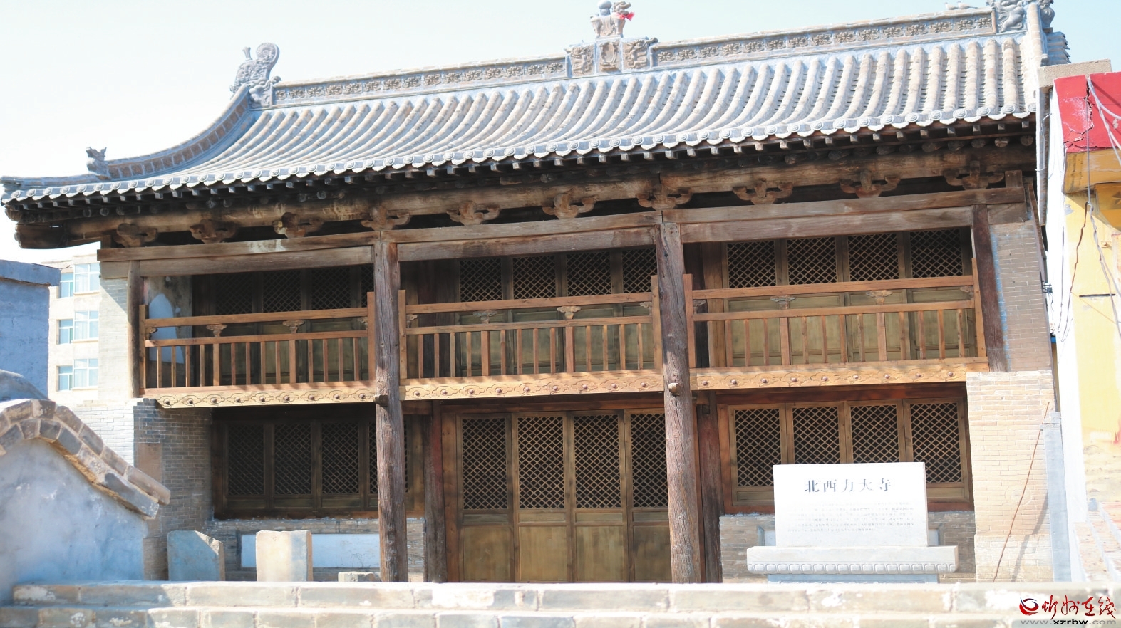 北西力大寺位于定襄縣晉昌鎮(zhèn)北西力村中,坐北朝南,東西長11.1米、南北寬8.4米,占地面積約93平方米。據(jù)梁架題記記載為明萬歷四十三年(1615)所建。該寺沿中軸線原建有山門、過廳、正殿,兩側(cè)建有東西配房?,F(xiàn)僅存正殿,為二層樓閣式結(jié)構(gòu),面寬三間,進(jìn)深四椽,前設(shè)廊,單檐懸山頂,五檁架結(jié)構(gòu)。二層廊前兩側(cè)有人物壁畫約4平方米。2015年8月25日公布為市級(jí)文物保護(hù)單位。