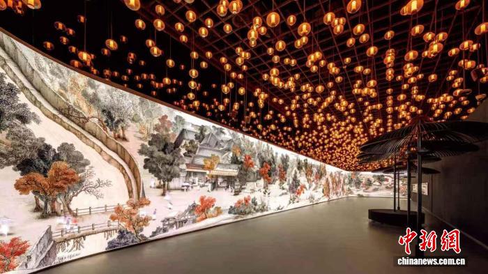 《金陵圖》為清代畫家馮寧創(chuàng)作的紙本設色長卷,現(xiàn)藏于德基藝術博物館。《金陵圖》在十米余長、連續(xù)而多元的場景中,共繪有人物形象533個、動物90只、車馬轎輿24余、店鋪攤販40余,郊外風光宜人,百姓和樂;城內商業(yè)繁華,上士高賓、商賈攤販齊聚,熙熙攘攘,熱鬧非凡,被譽為“最能代表南京”的傳世古畫。宋代中國社會各個階層的生活方式、經濟活動以及宋代的建筑和服裝風格,均在畫中得到了淋漓盡致的展現(xiàn),具有極高的歷史文化價值。2021年起,德基藝術博物館通過數字科技煥新文化遺產《金陵圖》,打造“金陵圖數字藝術展”,開展幾年來一直以其前沿的互動體驗和沉浸式觀展模式,廣受各界好評。