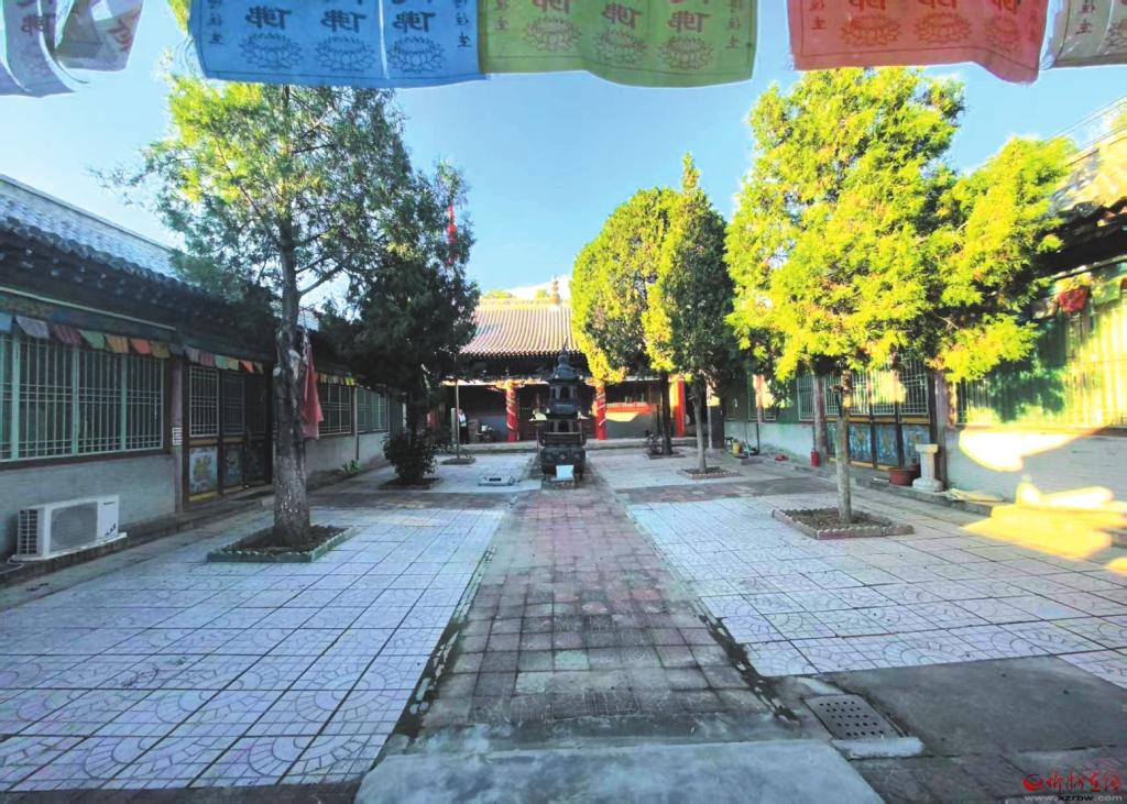 寺廟坐北朝南,呈四合院落布局,占地面積約980平方米。正殿面寬三間,進深六椽,前后設(shè)廊,斗拱柱頭科五踩雙下昂,平身科每間一攢斜拱,襯枋頭平直昂,耍頭為云形。懸山頂,飾琉璃脊獸。殿內(nèi)山花墻上存有清代壁畫約9平方米。東西朵殿均面闊三間,硬山灰瓦頂,前出卷棚歇山抱廈。東殿供王母娘娘,西殿供大仙爺。