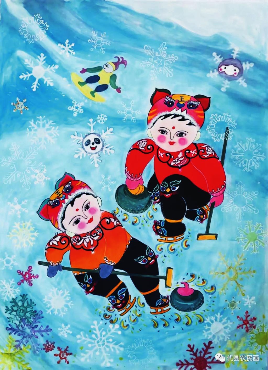 千淘萬漉雖辛苦,吹盡狂沙始到金。這些農(nóng)民畫促進會的女畫家為了創(chuàng)作吃盡了苦,費盡了心,但也在追求藝術(shù)的路上收獲了許多。丁全愛創(chuàng)作的《寒燕兒》《甜》入展山西省群眾文化惠民工程“美麗鄉(xiāng)村”現(xiàn)代農(nóng)民畫優(yōu)秀作品展,《吉祥五寶》《跤娃》《春拂滹沱》入選山西省脫貧攻堅農(nóng)民畫展;戴翠平的《撓閣上來了》被山西省農(nóng)民畫研究會收藏,2020年疫情期間創(chuàng)作的《逆行者》《眾志成城抗疫情》《全球同心抗疫情》均被代縣檔案館收藏;賈永花的《春意盎然》入展山西省群眾文化惠民工程“新農(nóng)村、新氣象”省農(nóng)民畫優(yōu)秀作品展,《農(nóng)家樂》被山西省文化館收藏;祁磊創(chuàng)作的《盛世鼓舞》被評為山西省群眾文化惠民工程“新農(nóng)村、新氣象”省農(nóng)民畫最佳作品;在中國農(nóng)民畫研究會2022年“虎虎生威慶冬奧”專題云展活動中,丁全愛、王粉玲、戴翠平、孫瑰峰、戴永蓮、柳尚艷六位畫家的作品被選中入展……她們的作品先后在《山西日報》《忻州日報》專欄刊登,逐漸被省內(nèi)外的行家和廣大農(nóng)民畫愛好者所認可,釋放出濃烈的彩墨馨香。(劉 睿)