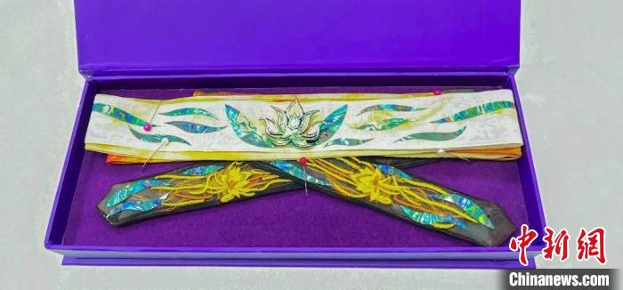 一旁,葉晶晶則忙著給影視劇劇組提供非遺道具?!芭c《永夜星河》制作團隊的合作,標志著我們首次嘗試將傳統(tǒng)工藝與現(xiàn)代影視藝術(shù)進行融合。我們結(jié)合了傳統(tǒng)的螺鈿工藝與絲綢工藝,不僅推出了螺鈿發(fā)帶,還設(shè)計了蓮花頭飾和掛飾。每一步驟都經(jīng)過精心策劃和細致制作,最終讓這些螺鈿飾品成為劇中最閃亮的道具。”