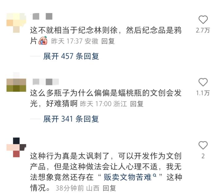 網(wǎng)友的評論,反映出公眾對該設計的強烈不適感。這款承載著“文物歸鄉(xiāng)”意義的文創(chuàng)產(chǎn)品,卻因設計細節(jié)被指“消費歷史苦難”。