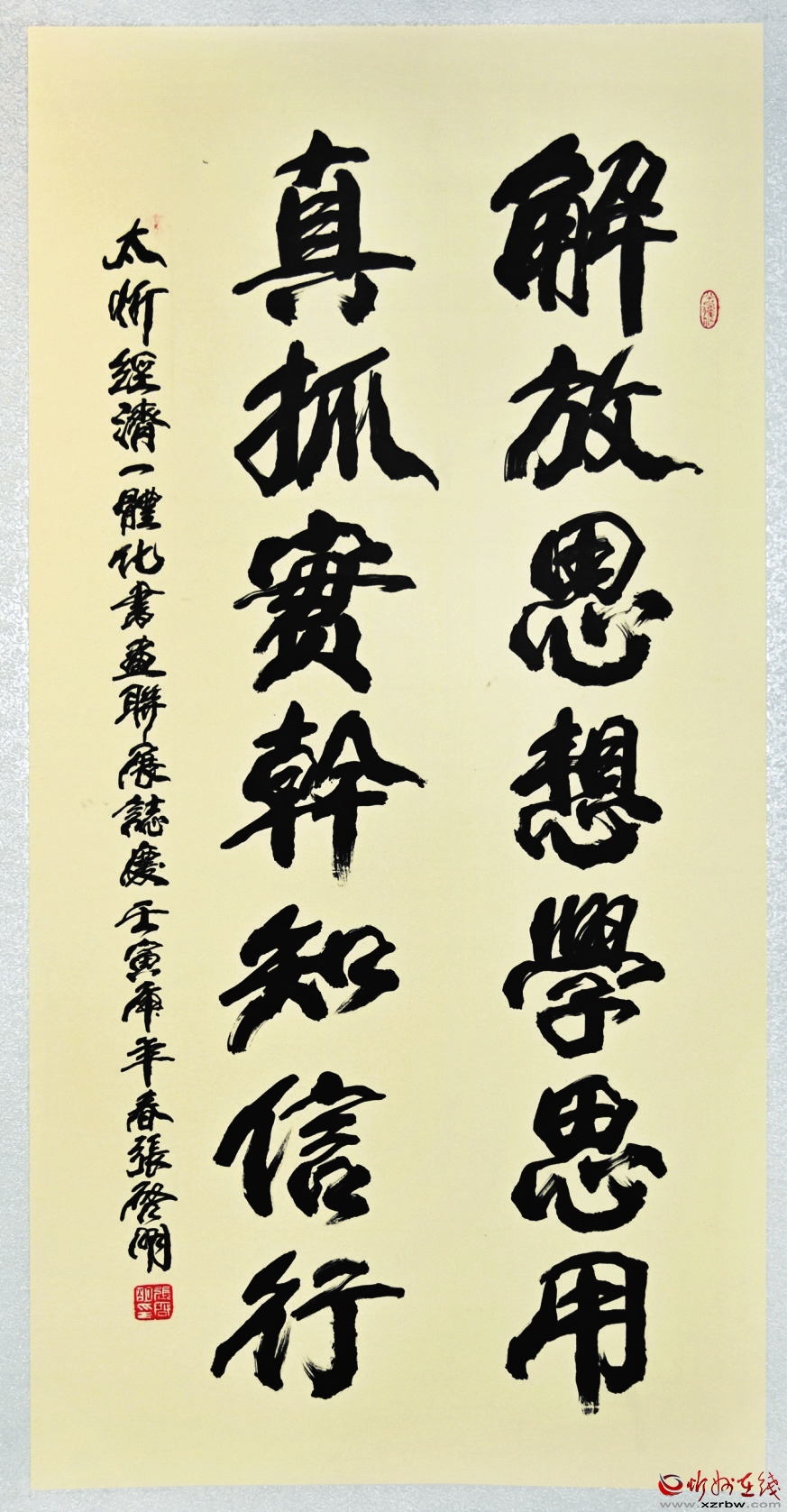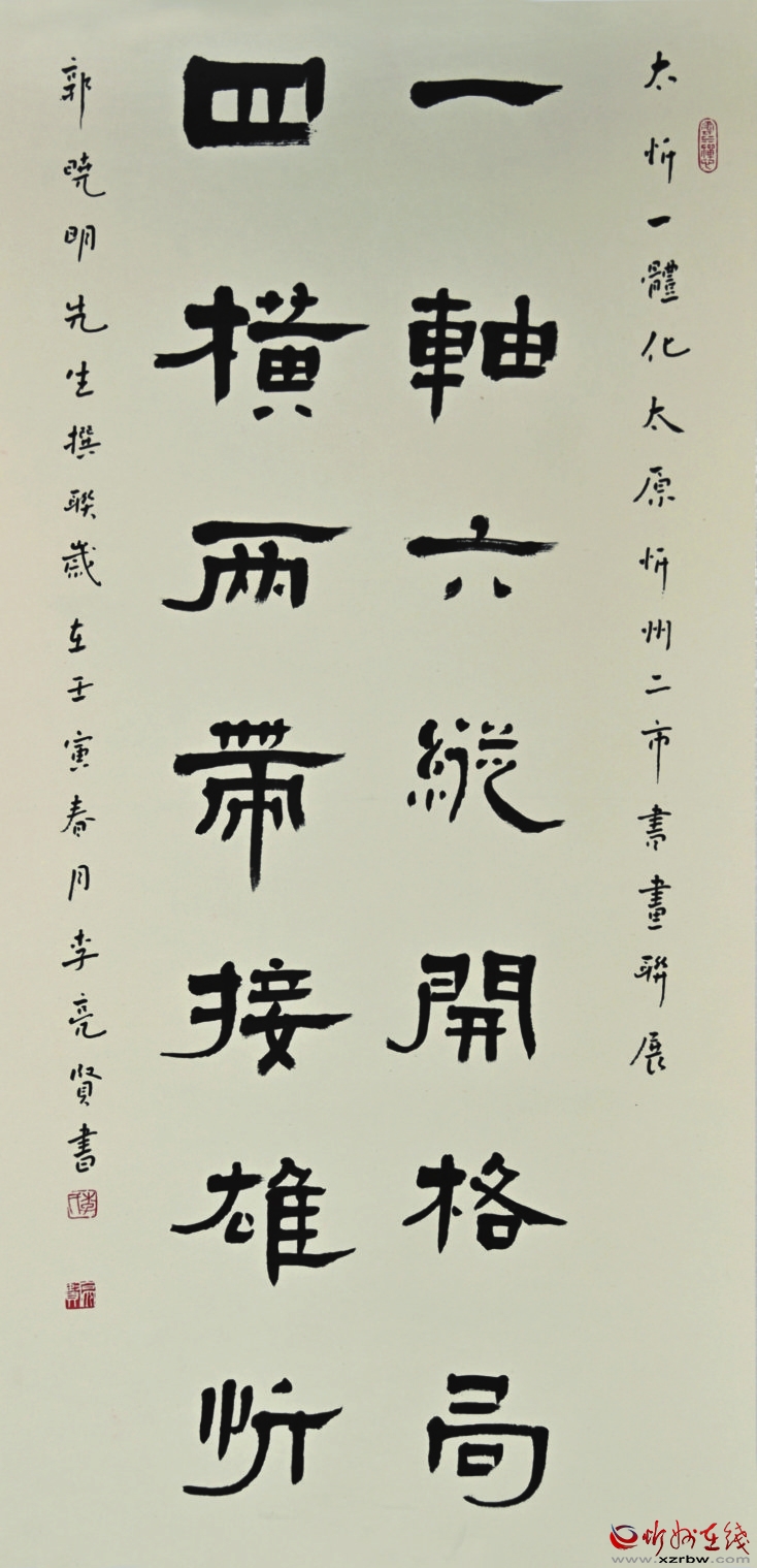 丹青吐彩,翰墨飄香。5月25目,由太原市委宣傳部、忻州市委宣傳部、山西省圖書館、太原市文聯(lián)、忻州市文聯(lián)共同主辦,太原市書法家協(xié)會、忻州市書法家協(xié)會承辦,助力“太忻經(jīng)濟(jì)一體化”發(fā)展——太原·忻州城市書法聯(lián)展在山西省圖書館拉開帷幕。