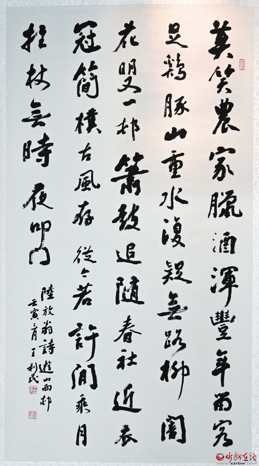 據(jù)悉,今年5月,忻州市文聯(lián)面向全市書畫界征集主題書畫作品,同時向書畫名家進(jìn)行約稿,征集書法作品271件,美術(shù)作品30件。經(jīng)過公正嚴(yán)格組織評選,最后入選展覽作品80余件。作品藝術(shù)形式多樣,諸體兼?zhèn)洌瑯?gòu)思新穎,具有較高的思想性與藝術(shù)性,從書法繪畫的視野,展現(xiàn)出太忻一體化經(jīng)濟(jì)區(qū)建設(shè)的進(jìn)程,充盈著高雅的藝術(shù)格調(diào)和鮮活的時代氣息。