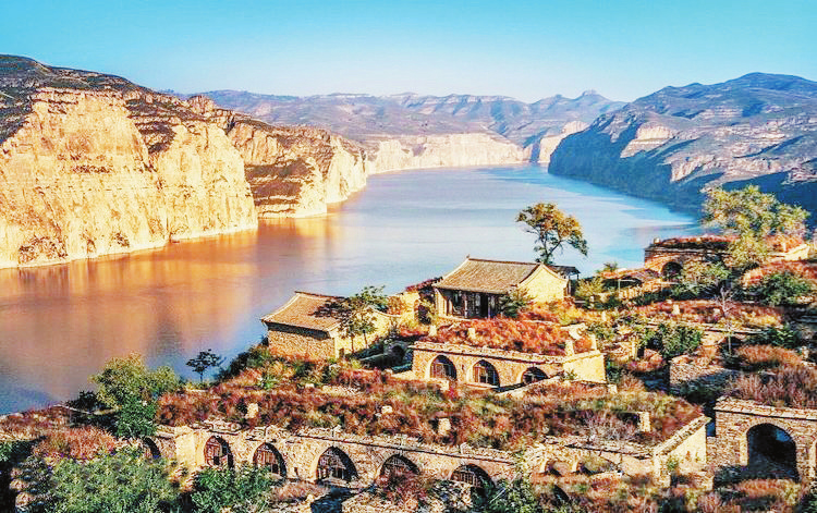 那時(shí)的關(guān)河口,船有常規(guī)木船,也有皮筏子,但這種皮筏不似黃河上游的羊皮筏子,是“牛皮混沌”,如何制作“牛皮混沌”,不很清楚,但運(yùn)載量更大。就這樣,從萬家寨、老牛灣、黑豆埝、寺溝到關(guān)河口,成為黃河中游起首的五個(gè)重要渡口。上游的龍口水庫建成之后,關(guān)河口的水面更開闊,船只可以自然靠岸,發(fā)展前景也更明朗?,F(xiàn)在,它不僅是一個(gè)野營、劃船、攝影、徒步攀登的好去處,也是游覽山光水色的“小江南”,有樺林堡,有護(hù)方寺,還有石經(jīng)禪院,傳統(tǒng)人文氣氛濃厚。