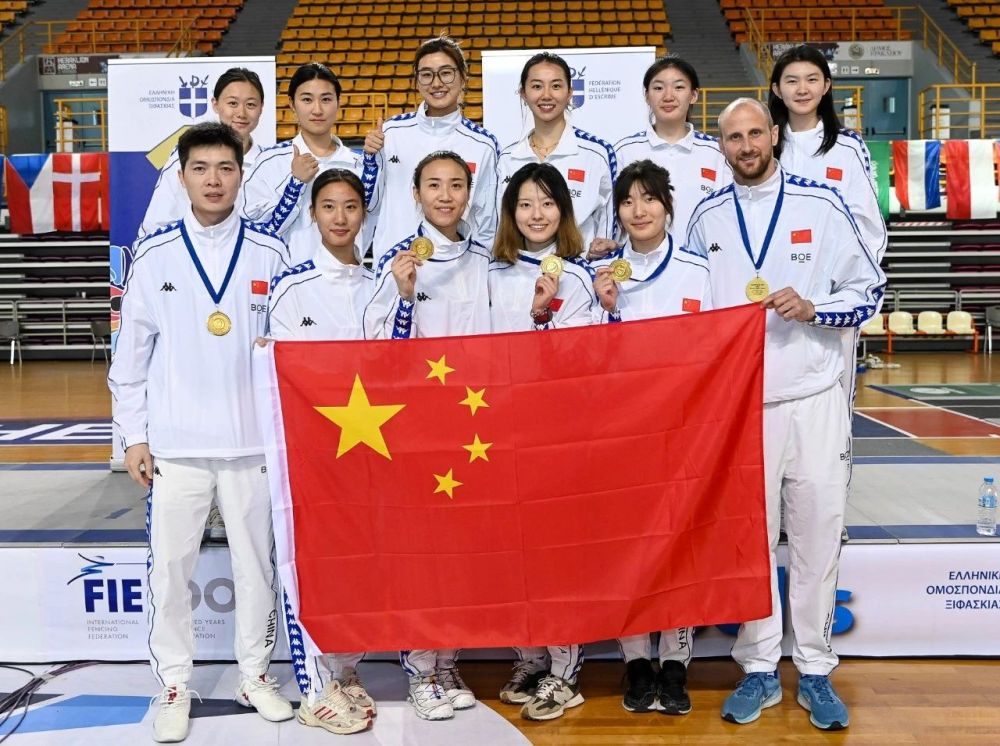 新華社雅典3月9日電 在當?shù)貢r間9日進行的2024/25賽季國際劍聯(lián)女子佩劍世界杯希臘伊拉克利翁站比賽中,中國隊一路過關斬將摘得團體金牌。這是中國女佩自2011年倫敦站后,時隔14年再奪世界杯團體冠軍。