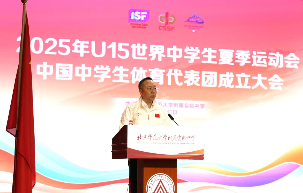 新華社北京3月31日電(記者韋驊)2025年U15世界中學(xué)生夏季運(yùn)動(dòng)會(huì)中國中學(xué)生體育代表團(tuán)成立大會(huì)31日在北京師范大學(xué)附屬實(shí)驗(yàn)中學(xué)召開,中國代表團(tuán)將派出100名運(yùn)動(dòng)員赴塞爾維亞茲拉蒂博爾參賽。