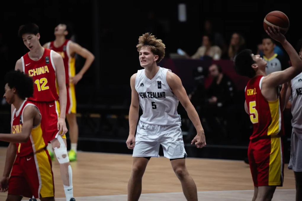 次節(jié)開始后,新西蘭隊繼續(xù)擴大比分,雙方分差一度達到20分。面對困境,中國隊并未放棄,依靠陳家政、張博源等得分手的發(fā)揮逐步縮小分差。上半場,中國隊以37:52落后對手15分。