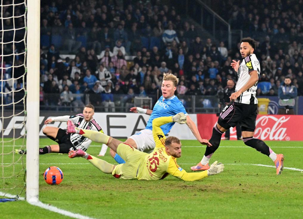 易邊再戰(zhàn),尤文利用一次進(jìn)攻小高潮將比分扳平。第59分鐘,麥肯尼和伊爾迪茲在一次反擊中相互傳遞配合,突入禁區(qū),后者推射將球打進(jìn)。第78分鐘,麥肯尼試圖解圍時,為霍伊倫送出烏龍助攻,后者頭球破門,幫助那不勒斯2:1勝出。