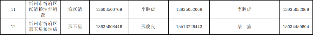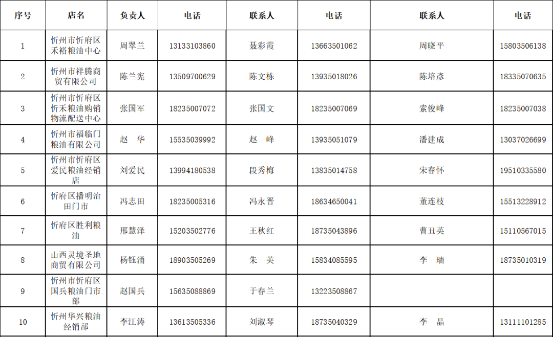 忻府區(qū)保供糧油門店聯(lián)系方式和供應(yīng)區(qū)域表