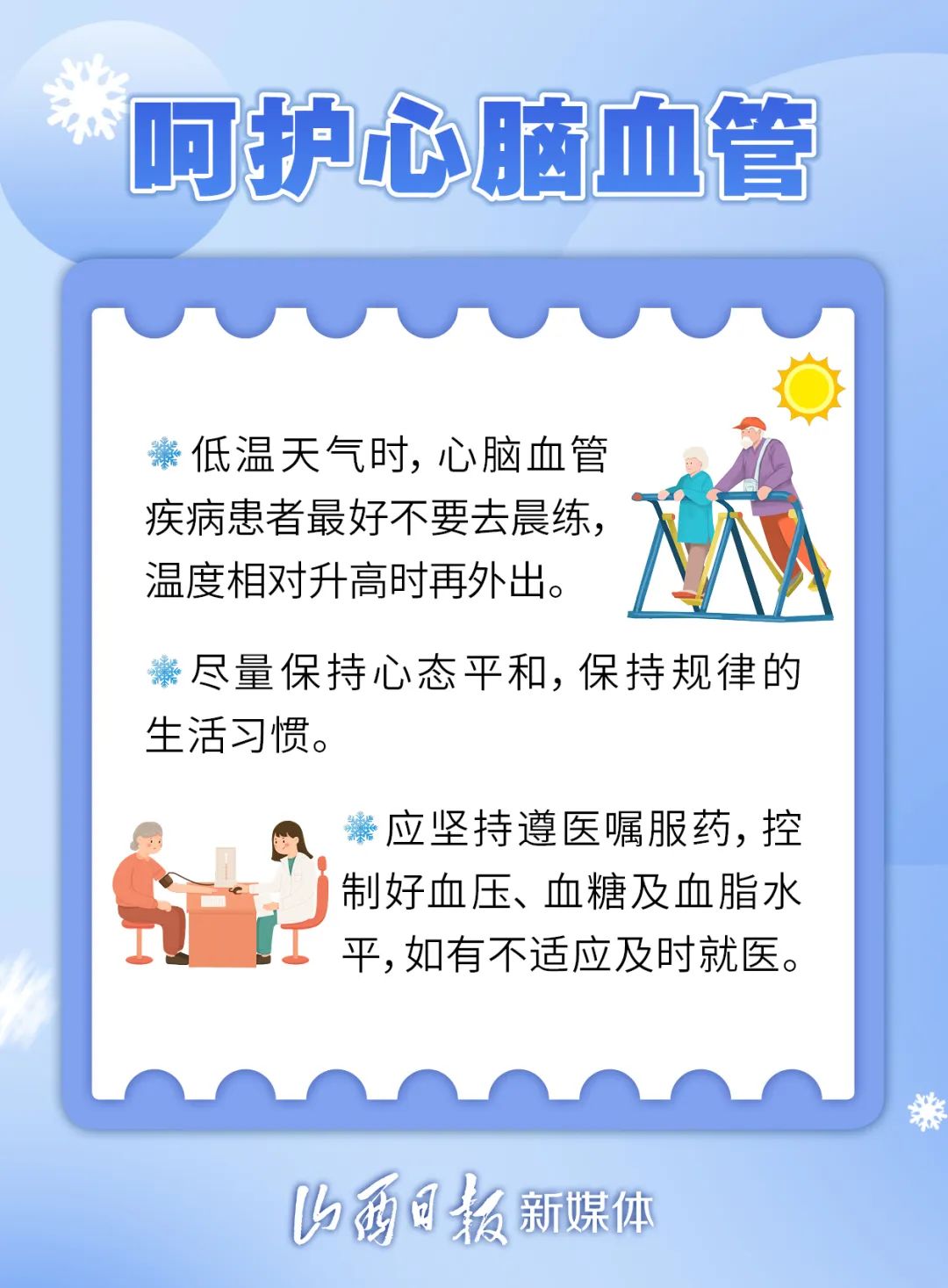 隨著大雪節(jié)氣的到來(lái),我省迎來(lái)了降雪。美麗的雪景,給人們帶來(lái)了歡樂和驚喜。然而,雪天也存在諸多隱患。下面這份健康提示請(qǐng)收好,助大家度過寒冷的冬季。