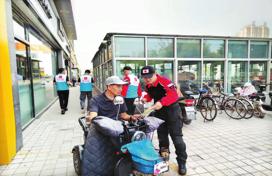 據(jù)了解,每年9月的第三個星期六是“世界骨髓捐獻者日”?;顒赢斕?,市紅十字會工作人員、市紅十字應(yīng)急救援隊隊員以及志愿者,向市民普及日常應(yīng)急救護知識,介紹應(yīng)急救護基本技能。同時,向市民發(fā)放健康教育宣傳資料,宣傳無償獻血、造血干細胞捐獻等相關(guān)知識,呼吁更多適齡健康公民奉獻愛心,挽救更多的血液病患者。圖為志愿者在活動現(xiàn)場向市民發(fā)放健康教育宣傳資料。(記者張林泉 攝影報道)