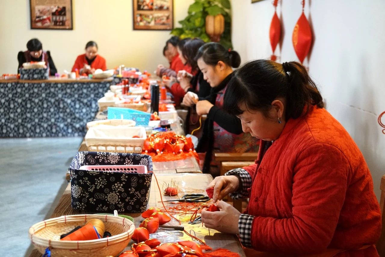 ▲馬莊香包文化大院“穿針引線”的村民