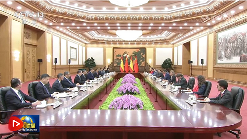 4月14日上午,國家主席習近平在北京人民大會堂會見來華進行正式訪問的西班牙首相桑切斯。