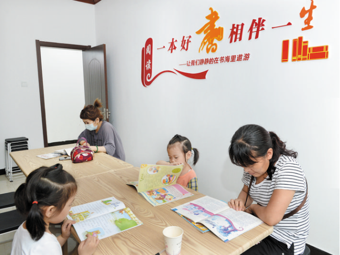 我市在創(chuàng)建全國文明城市工作中,城區(qū)辦事處綜合文化站標(biāo)準(zhǔn)化規(guī)范化工作得到進(jìn)一步提升。圖為社區(qū)群眾正在新建路辦事處黨群服務(wù)中心閱覽室進(jìn)行親子閱讀。本報記者 宮愛文 攝
