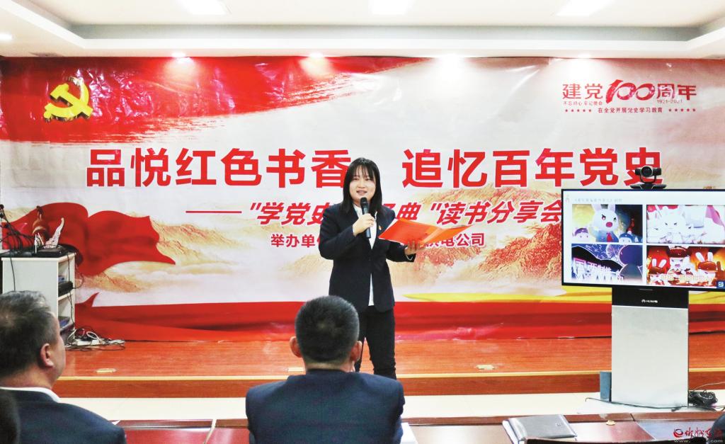 為慶祝中國(guó)共產(chǎn)黨成立100周年,推進(jìn)黨史學(xué)習(xí)教育走深走實(shí),重溫黨史,感悟初心使命,傳承紅色基因,國(guó)網(wǎng)寧武縣供電公司舉辦了“品悅紅色書香 追憶百年黨史”讀書分享會(huì)。圖為活動(dòng)現(xiàn)場(chǎng)。 (張正雨 攝)