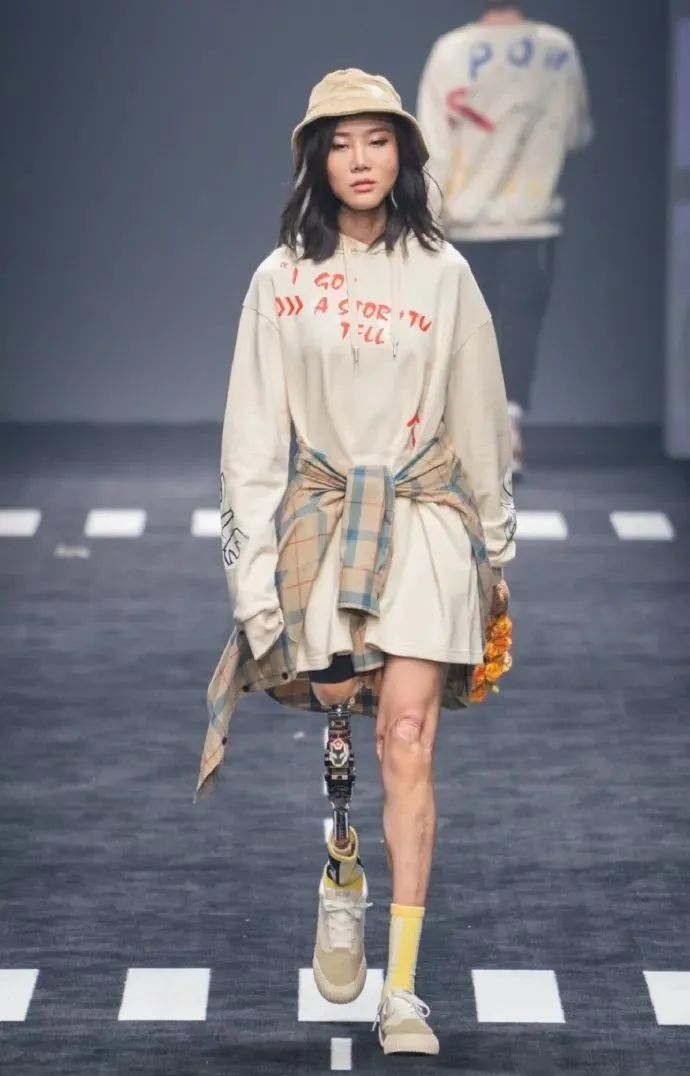 從難以接受 到慢慢與不完美的自己和解 2021年上海時裝周 牛鈺踩著假肢走上T臺 用“機(jī)械小鋼腿”征服了所有人