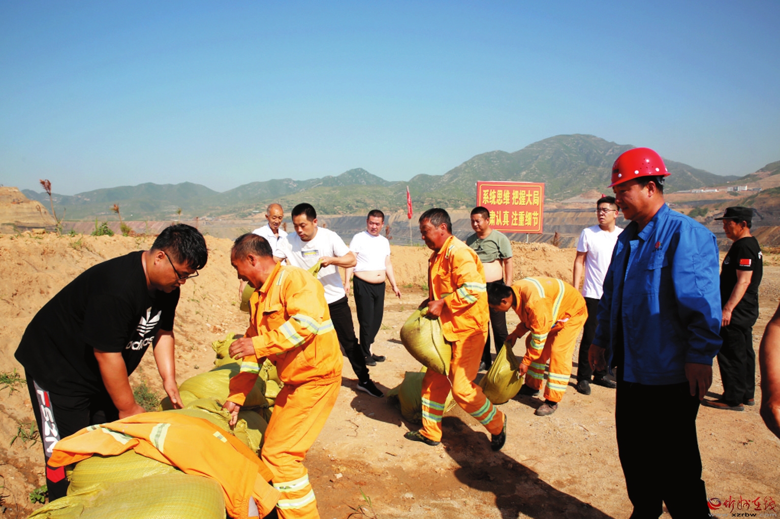 常態(tài)化組織相關人員對露天煤礦采坑、排土場及上游泄洪通道進行全方位巡察,對可能發(fā)生阻塞河道的地段進行加固引流,及時進行了疏通。沿露天采坑周邊構筑攔水壩,對河流積水進行引流,確保安全度汛。圖為應急演練現(xiàn)場。 (高文進)