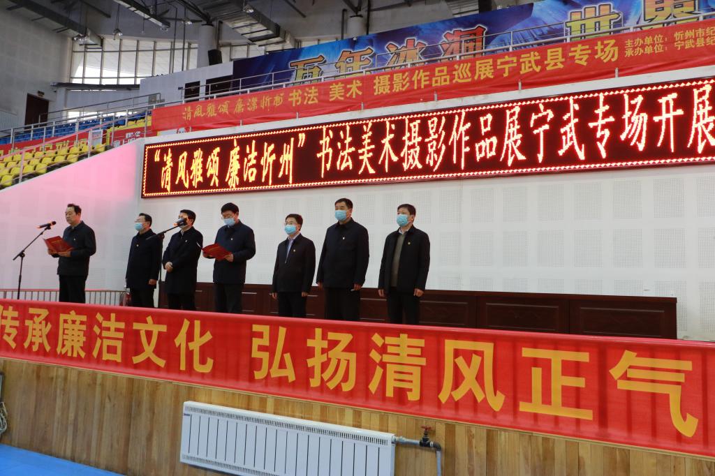 筆墨書廉潔,丹青揚(yáng)正氣。11月27日,由忻州市紀(jì)委監(jiān)委主辦、寧武縣紀(jì)委監(jiān)委承辦的“清風(fēng)雅頌·廉潔忻州”書法美術(shù)攝影作品巡展寧武縣專場(chǎng)在縣體育館隆重開(kāi)展。寧武縣委書記任寧虎在開(kāi)展儀式上講話并宣布開(kāi)展。縣委常委、縣紀(jì)委書記、監(jiān)委主任尹志剛主持開(kāi)展儀式??h四套班子領(lǐng)導(dǎo)和其他縣處級(jí)領(lǐng)導(dǎo),各縣直單位、各鄉(xiāng)(鎮(zhèn))的主要領(lǐng)導(dǎo),全縣紀(jì)檢監(jiān)察干部,共計(jì)180余人參加儀式。