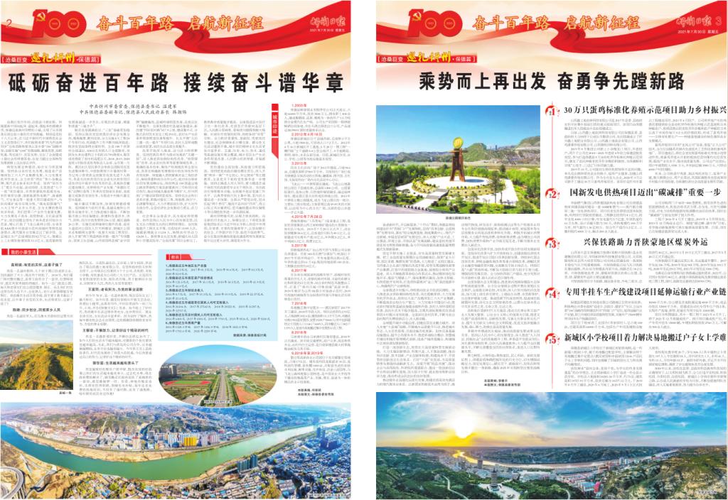 滄桑巨變百年間,啟航奮斗新征程。伴隨著新中國站起來、富起來、強起來的鏗鏘步伐,保德這座黃河岸畔的小城,實現(xiàn)了從貧困落后到全面小康的歷史性跨越。特別是黨的十八大以來,在習近平新時代中國特色社會主義思想指引下,我們按照省委“四為四高兩同步”總體思路和要求以及市委“336”戰(zhàn)略布局,創(chuàng)新實施“1245”發(fā)展戰(zhàn)略,解放思想、搶抓機遇,篤定前行、攻堅克難,交出了全面建成小康社會的保德答卷,在奮力蹚出全面轉型發(fā)展新路上邁出堅實步伐。