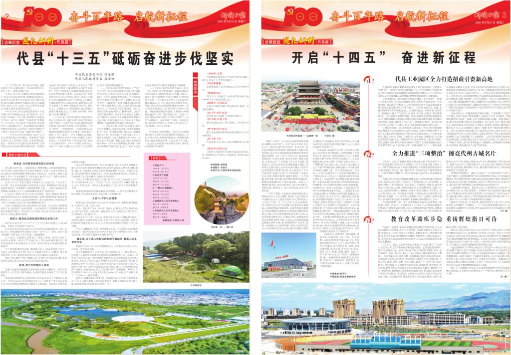 “十三五”的五年,是代縣與時俱進、創(chuàng)新發(fā)展的五年,是砥礪前行、務(wù)實奮進的五年,是苦干實干、成果豐碩的五年。