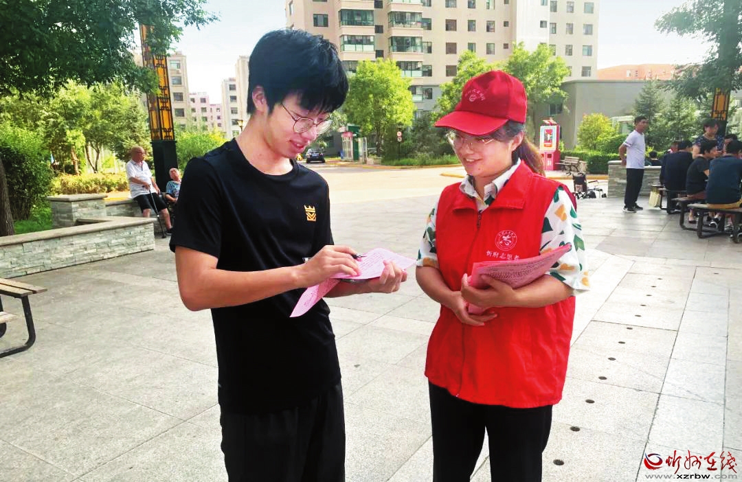志愿者在小區(qū)進(jìn)行問卷調(diào)查。劉慧 攝