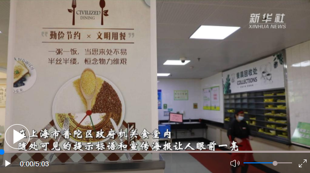 “點菜點少、不夠再添”“光盤行動、從我做起”“厲行節(jié)約、反對浪費”……在上海市普陀區(qū)政府機關(guān)食堂內(nèi),隨處可見的提示標(biāo)語和宣傳海報讓人眼前一亮。