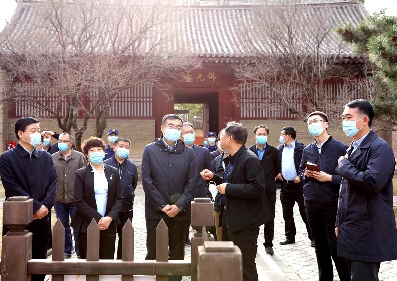 李建國(guó)實(shí)地察看繁五高速規(guī)劃路線,聽取相關(guān)控制性工程和預(yù)算等情況。在佛光寺察看護(hù)林防火和安保措施,聽取省古建筑與彩塑壁畫保護(hù)研究院關(guān)于佛光寺保護(hù)活化利用的相關(guān)規(guī)劃介紹。李建國(guó)指出,相關(guān)部門要及時(shí)補(bǔ)齊繁五高速前期推進(jìn)中的短板和不足,緊緊抓住太忻一體化經(jīng)濟(jì)區(qū)建設(shè)的重大歷史性機(jī)遇,解放思想、真抓實(shí)干、主動(dòng)作為,加快構(gòu)建形成綜合立體交通網(wǎng)絡(luò),助力太忻一體化經(jīng)濟(jì)區(qū)建設(shè)強(qiáng)勢(shì)起步。要統(tǒng)籌做好繁五高速建設(shè)與佛光寺文化遺產(chǎn)保護(hù)活化利用,以大五臺(tái)、大佛光寺理念,推進(jìn)科學(xué)研究、文化教育、旅游觀光等多重功能的有機(jī)統(tǒng)一,積極探索世界遺產(chǎn)地可持續(xù)發(fā)展之路,“讓文物說話、讓歷史說話、讓文化說話”,為做強(qiáng)大五臺(tái)旅游吸引圈、忻定原康養(yǎng)服務(wù)圈、太忻黃金旅游帶提供豐富元素,有力打造世界級(jí)旅游康養(yǎng)目的地。