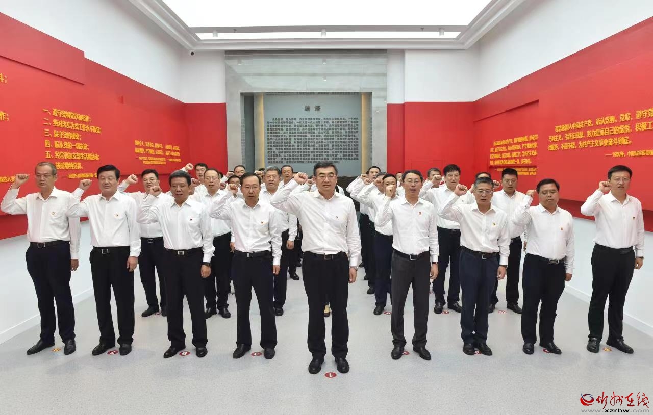 觀展前,同志們還集體觀看了警示教育片。觀展后,在宣誓廳鮮艷的中國(guó)共產(chǎn)黨黨旗前,李建國(guó)領(lǐng)誓,觀展同志一起重溫入黨誓詞。