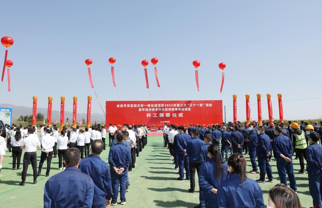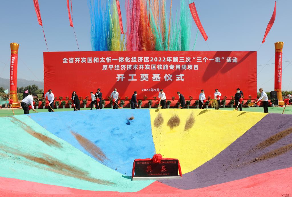 簽約儀式結(jié)束后,與會人員赴“開工一批”代表項目原平經(jīng)濟技術(shù)開發(fā)區(qū)鐵路專用線項目建設(shè)點舉行奠基儀式,隨后,赴“投產(chǎn)一批”代表項目萬星新材料產(chǎn)業(yè)園(山西)有限公司生產(chǎn)車間現(xiàn)場觀摩。本次活動,全市開發(fā)區(qū)開工項目30個,總投資145億元;投產(chǎn)項目23個,總投資59億元。太忻一體化經(jīng)濟區(qū)忻州片區(qū)開工項目64個,總投資247億元;投產(chǎn)項目27個,總投資133億元。