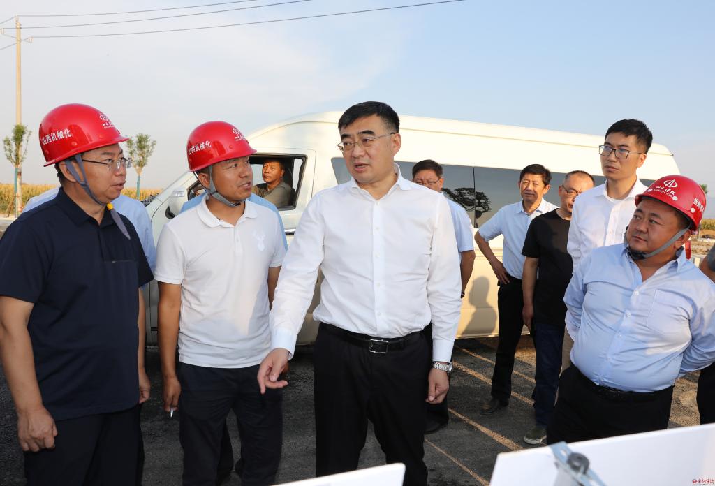 在太忻大道服務(wù)區(qū)建設(shè)基地。范濤 攝 9月12日,市委副書記、市長(zhǎng)李建國(guó)深入太忻大道、東環(huán)路、忻原大道施工現(xiàn)場(chǎng),察看工程建設(shè)進(jìn)度,詳細(xì)了解質(zhì)量管理、交通組織、安全環(huán)保、要素保障等情況,現(xiàn)場(chǎng)研究解決工程建設(shè)中遇到的困難問(wèn)題。副市長(zhǎng)耿鵬鵬,市政府秘書長(zhǎng)張艮生,市直相關(guān)部門負(fù)責(zé)人參加。