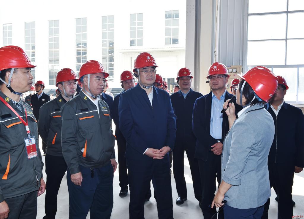 在山西眾立法蘭有限公司觀摩檢查新建鋁合金軋制-旋壓一體成型生產(chǎn)線項(xiàng)目建設(shè)情況。馮曉磊 攝