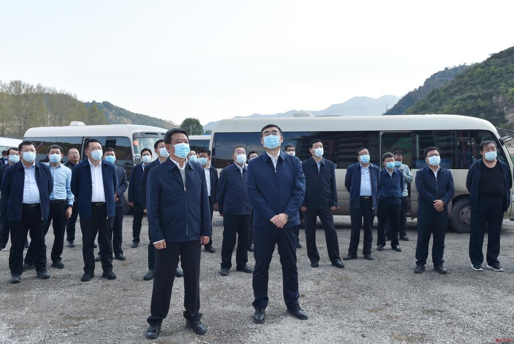 在石咀鎮(zhèn)射虎川村觀摩檢查住宅安置區(qū)(臺(tái)麓花園)項(xiàng)目進(jìn)展情況。馮曉磊 攝