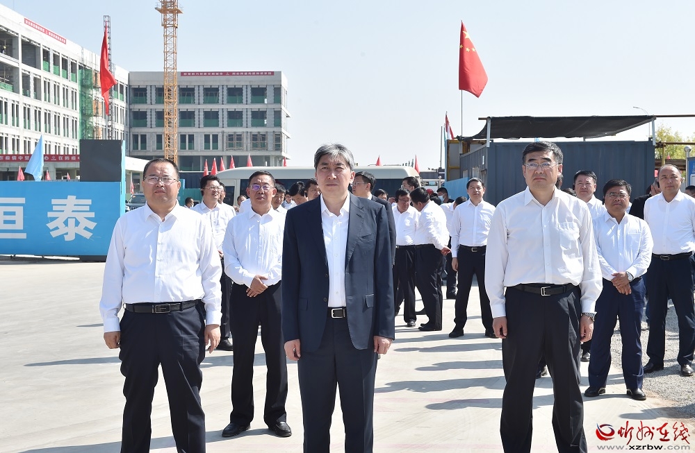 在通匯建設(shè)發(fā)展有限責任公司觀摩檢查忻州經(jīng)濟開發(fā)區(qū)承接項目標準化廠房項目建設(shè)情況。馮曉磊 攝