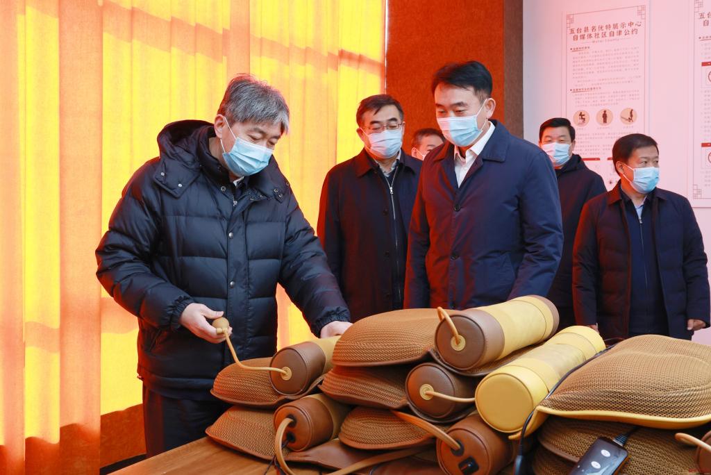 簽約儀式結(jié)束后,與會人員現(xiàn)場觀摩了“投產(chǎn)一批”重點項目五臺縣名優(yōu)特展示中心。該中心集五臺縣名優(yōu)特產(chǎn)品展示、網(wǎng)紅打卡地、睡覺村好睡眠體驗館、電商直播基地、辨體質(zhì)本草雜糧調(diào)理中心、農(nóng)民自產(chǎn)自銷交易平臺、第一書記之家七大功能于一處,在視覺效果上突出觀賞功能,為網(wǎng)紅打卡宣傳提供平臺和素材,同時兼具超市功能,顧客在參觀體驗的同時即可購買產(chǎn)品,既能帶動農(nóng)民創(chuàng)收,又能為城市居民帶來質(zhì)優(yōu)價廉的農(nóng)產(chǎn)消費品,為農(nóng)產(chǎn)品銷售提供一處高效交易平臺。