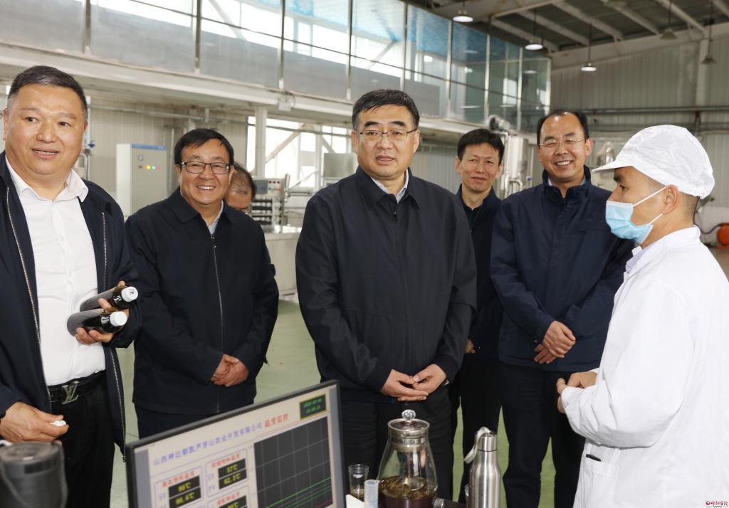 在寧武縣農(nóng)業(yè)產(chǎn)業(yè)園區(qū),李建國了解九峰毛健、湯朝茗香、管涔仙草、一品緣等藥茶系列產(chǎn)品,以及黃芪艾條等山珍中藥材新產(chǎn)品,走進(jìn)神達(dá)朝凱蘆芽山公司察看毛建茶生產(chǎn)工藝,赴寧化鎮(zhèn)頭馬營村毛建草育苗基地了解種苗繁育情況。他說,要深入挖掘毛健茶等忻州特色藥茶的功效,主動學(xué)習(xí)浙江龍井、云南普洱、福建武夷花茶等市場培育銷售經(jīng)驗(yàn),政府積極搭建平臺,用好用足鄉(xiāng)村e(cuò)鎮(zhèn)等政策,在促進(jìn)品目科學(xué)繁育、產(chǎn)品多樣豐富、市場健康發(fā)展上不遺余力深耕細(xì)作,培育高效營銷團(tuán)隊(duì),講好忻州藥茶故事,將生態(tài)文旅與藥茶專業(yè)鎮(zhèn)建設(shè)深度融合,打造轉(zhuǎn)型發(fā)展新引擎。