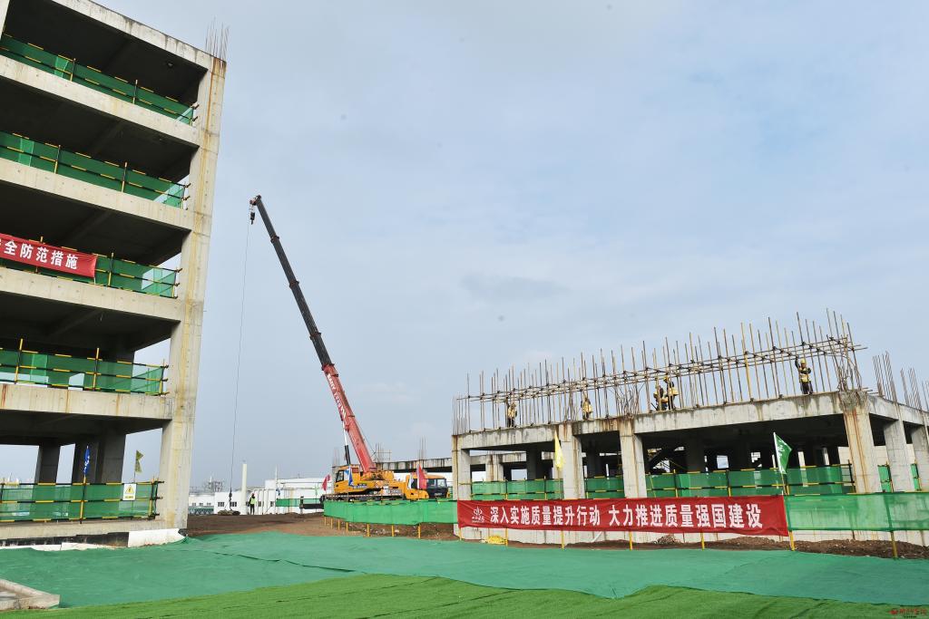 在電子信息裝備產(chǎn)業(yè)園觀摩檢查標準化廠房項目(二期)建設(shè)情況。馮曉磊攝