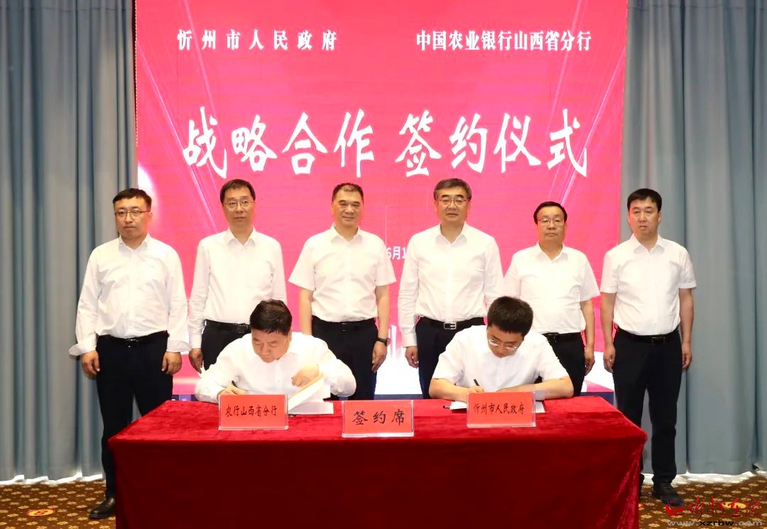 6月10日,忻州市人民政府與中國農(nóng)業(yè)銀行山西省分行簽署戰(zhàn)略合作協(xié)議。市委副書記、市長李建國,農(nóng)行山西分行黨委書記、行長安靜東出席簽約儀式并致辭。副市長李碩,農(nóng)行山西分行黨委委員、副行長董中華代表雙方簽約。市政府秘書長張艮生,農(nóng)行山西分行相關(guān)負責(zé)人,市直相關(guān)部門負責(zé)人等共同見證簽約。