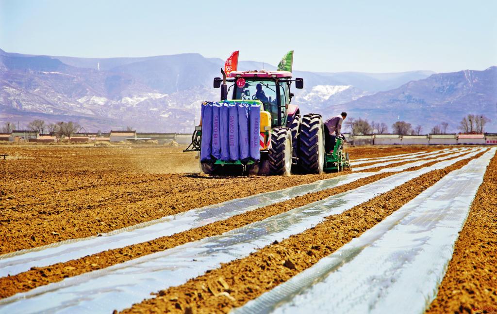 4月10日,五寨縣現(xiàn)代加工型馬鈴薯產(chǎn)業(yè)示范園的萬畝馬鈴薯輪作玉米播種工作全面啟動,預(yù)計今年輪作面積達2萬畝以上。為加快輪作進度,園區(qū)引進中國神農(nóng)農(nóng)業(yè)機械發(fā)展(山西)集團有限公司大型玉米綜合播種機,該播種機單次投種、投肥,鋪膜、布管面積可達100畝以上,預(yù)計全部輪作玉米播種工作將在5月初完成。圖為大型玉米綜合播種機正在播種。 (張向榮 攝)