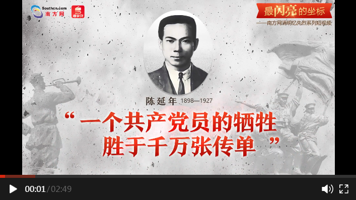 編者按:清明憶英烈,忠魂貫長(zhǎng)空。4月1日至5日,南方網(wǎng)、粵學(xué)習(xí)客戶(hù)端策劃推出“最閃亮的坐標(biāo)”系列短視頻,通過(guò)挖掘廣東革命烈士的光輝事跡,與大家一起緬懷英烈、學(xué)習(xí)英烈。今天推出第一篇《陳延年:一個(gè)共產(chǎn)黨員的犧牲勝于千萬(wàn)張傳單》。