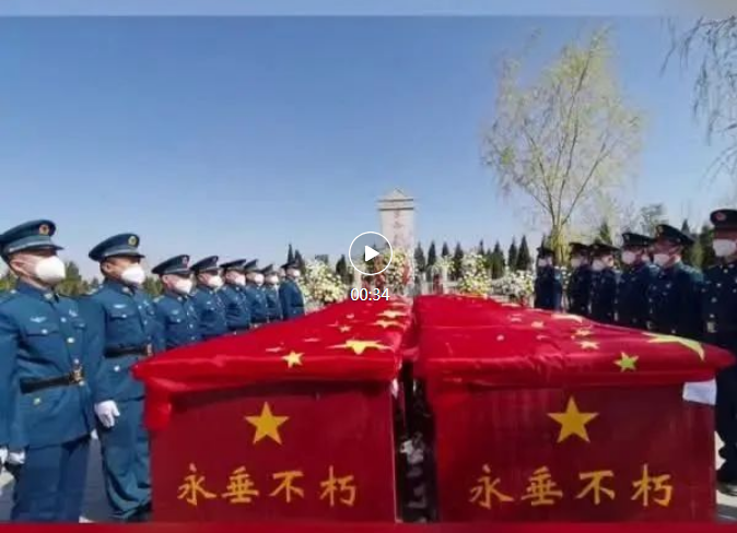 ▲禮兵護(hù)送16位烈士安葬陵園