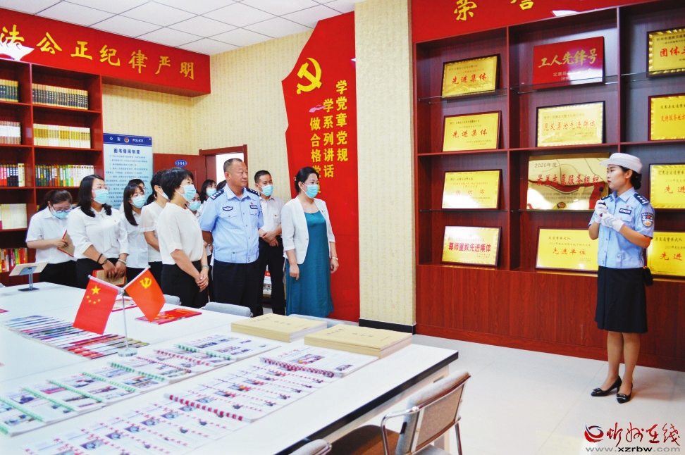 立足崗位,對(duì)標(biāo)先進(jìn)。7月1日,市婦聯(lián)黨組組織全體黨員干部前往“山西省巾幗文明崗”“省級(jí)青年文明號(hào)”等榮譽(yù)稱號(hào)獲得單位——定襄縣公安局交警大隊(duì)觀摩學(xué)習(xí)。 本報(bào)通訊員攝