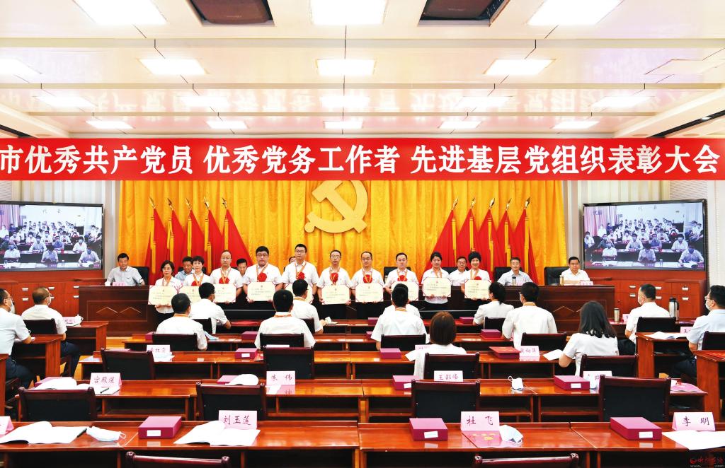 不忘初心,牢記使命,爭(zhēng)先創(chuàng)優(yōu)。在全市“兩優(yōu)一先”表彰大會(huì)上,受表彰的全市優(yōu)秀共產(chǎn)黨員上臺(tái)領(lǐng)獎(jiǎng)。 劉紀(jì)森攝