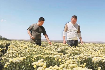 有了方向,行動(dòng)是關(guān)鍵。黨員徐大衛(wèi)主動(dòng)請纓,第一時(shí)間不遠(yuǎn)千里趕赴菊花主產(chǎn)區(qū)射陽考察菊花種植項(xiàng)目,經(jīng)過充分分析研判,篩選適宜五寨種植的品種,最終選定北京菊試種。同時(shí),他帶著誠意誠心,從射陽請來3名技術(shù)專家。在晉西北中藥材產(chǎn)業(yè)孵化園附近,他與3位專家同吃同住,深入田間地頭,與群眾同勞作、共生活。依據(jù)菊花種植要求,手把手教會(huì)群眾平整土地、開挖溝槽、栽種澆水、鋤草施肥和采挖收儲(chǔ)等中藥材精耕細(xì)作技術(shù)。針對菊花農(nóng)殘、重金屬超標(biāo)的問題,在試種過程中,他精心研究、反復(fù)摸索,大膽探索出了一套適用于菊花的種植技術(shù),實(shí)現(xiàn)了菊花農(nóng)殘可控的突破,先試種的100畝菊花,獲得了成功。
