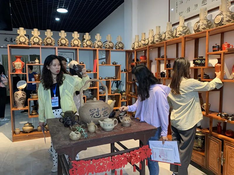 記者團(tuán)成員在冠窯砂器陶藝有限公司采訪。記者楊惠生攝