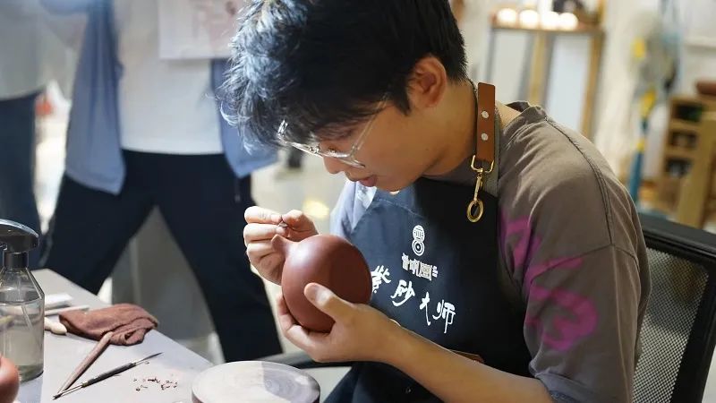 在砂器(紫砂)文化示范區(qū)的山西晉明堂文化科技有限公司(以下簡(jiǎn)稱(chēng)晉明堂),一位年輕人正熟練地運(yùn)用各種工具給手里的紫砂壺進(jìn)行壺嘴部分的制作。他叫穆清,今年剛20歲出頭的他,耳濡目染父親對(duì)紫砂文化的熱愛(ài),也對(duì)這一行業(yè)產(chǎn)生了濃厚的興趣,決心將平定紫砂文化傳承發(fā)揚(yáng)下去。