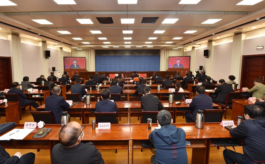 市領導集中收聽收看大會實況直播。馮曉磊 攝